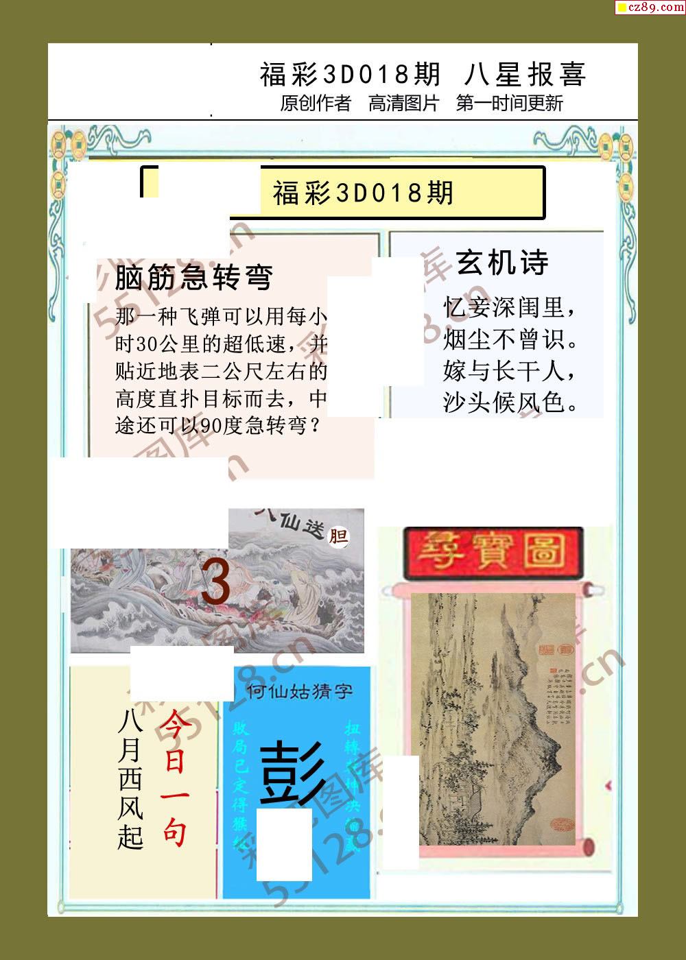 > 八星报喜26年018期福彩3d画谜